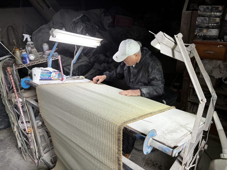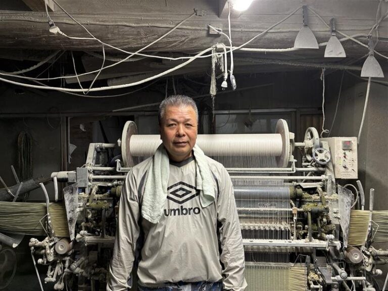 専業2代目。現在は奥様と二人三脚で製織を行っています。 い草の状態や品種を見極めながら、安心安全な畳表づくりに取り組まれています。 ■畳表 本間麻綿 本間綿々 五八麻綿 五八綿々